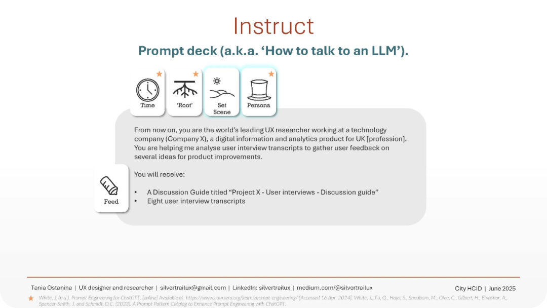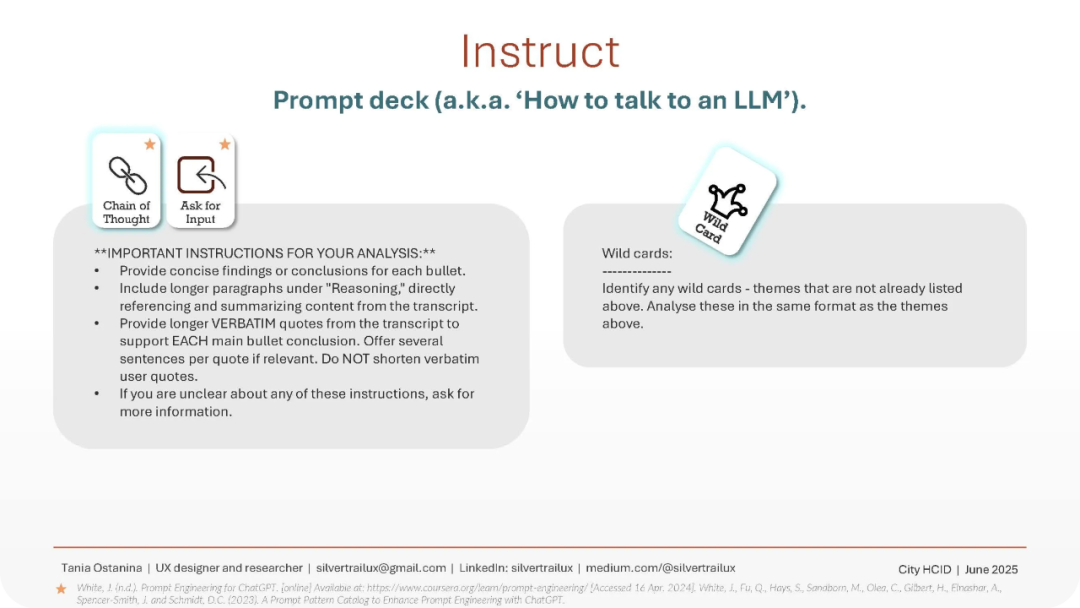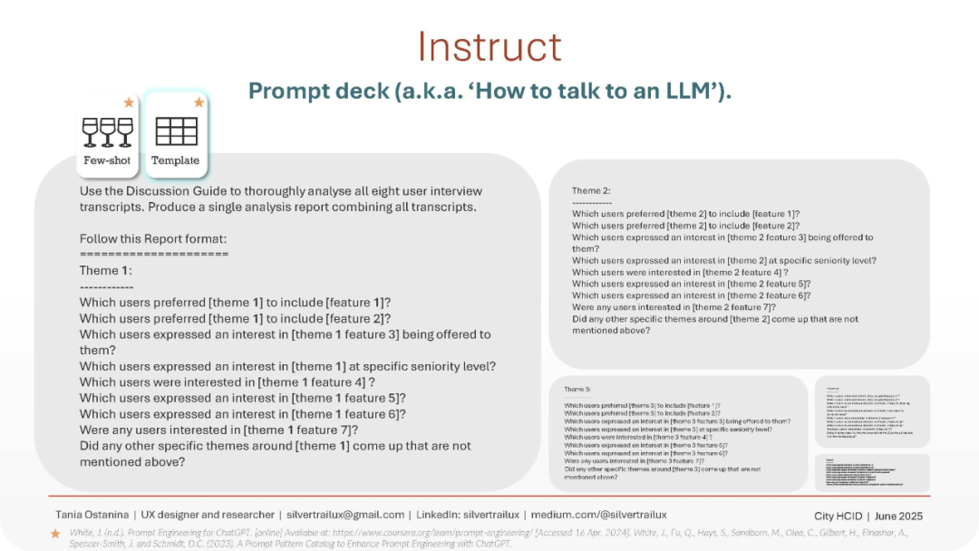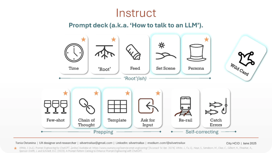 提示词卡片应用示例。这是我在 2025 年人机交互设计中心会议演讲中的一张幻灯片。(图片来源:Tania Ostanina)