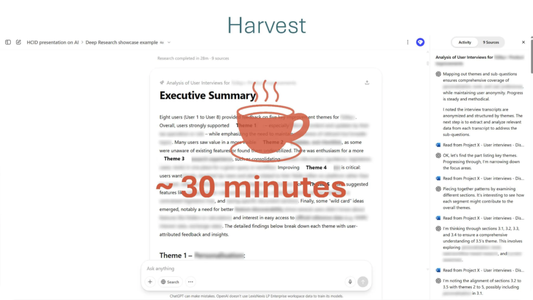 在等待 “深度研究” 生成报告时,不妨去喝杯咖啡。这是我 2025 年演讲中的一张幻灯片。(图片来源:Tania Ostanina)