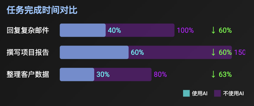 衡量方式: 这需要更复杂的设计。比如,测量用户在“使用 AI”和“不使用 AI”的情况下,完成同一个“标准任务”(如回复一封复杂邮件)所需的时间和精力。或者,衡量“采纳后修改率”——用户在采纳 AI 建议后,又花了多少时间去“订正”?