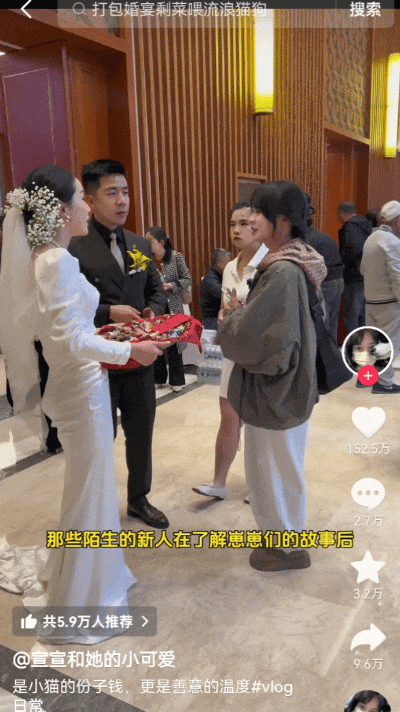 为了喂饱一百多只流浪猫,95后姑娘勇闯婚宴要剩菜