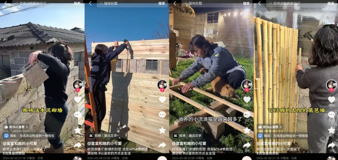 宣宣从不给自己立传统公益大使那种伟光正的人设,她就是一个有瑕疵、会焦虑、差点放弃的普通人。这种真实感让她在滤镜化的抖音生态中形成稀缺性。她在早期视频就暴露自己的脆弱,被邻居投诉、反复搬家、因疲惫崩溃大哭。