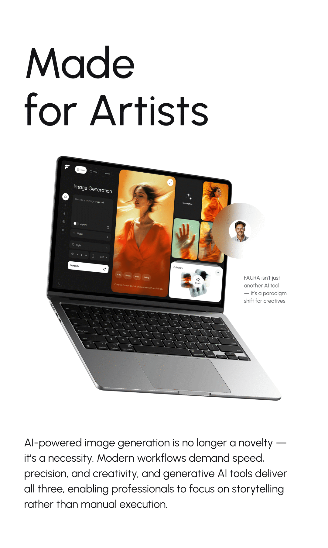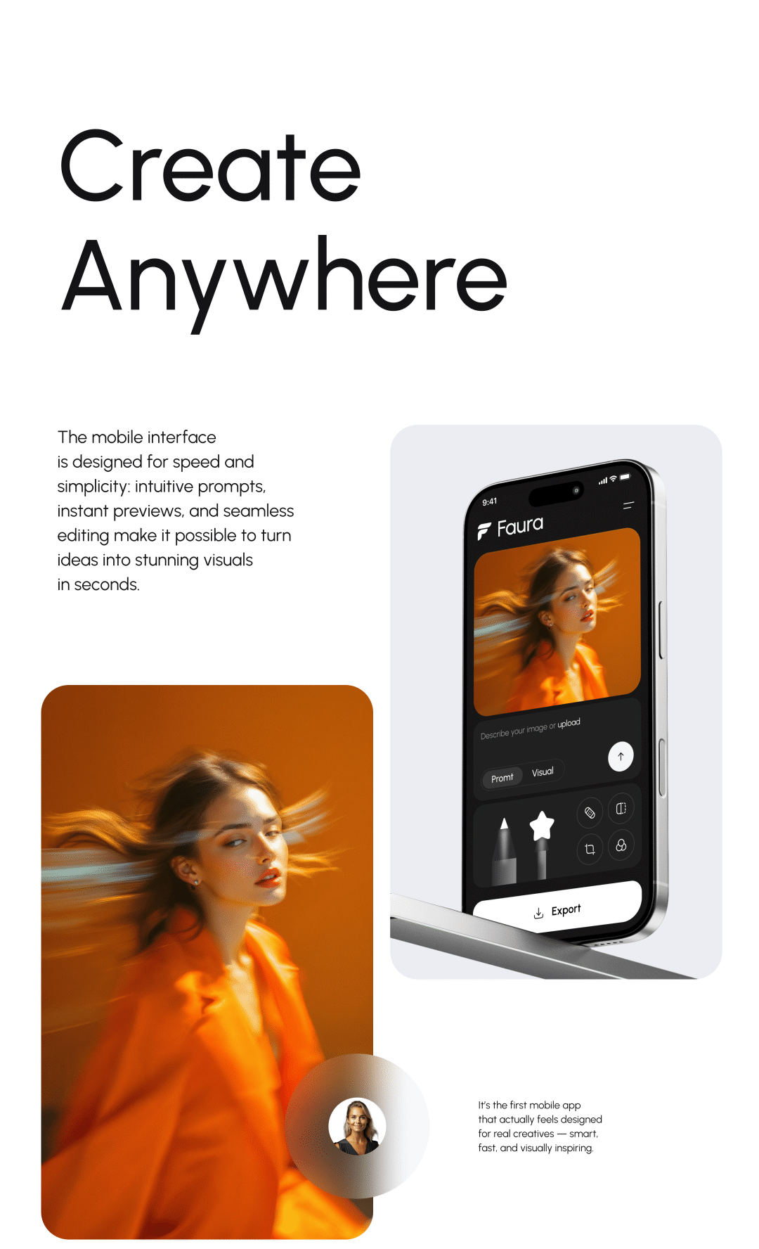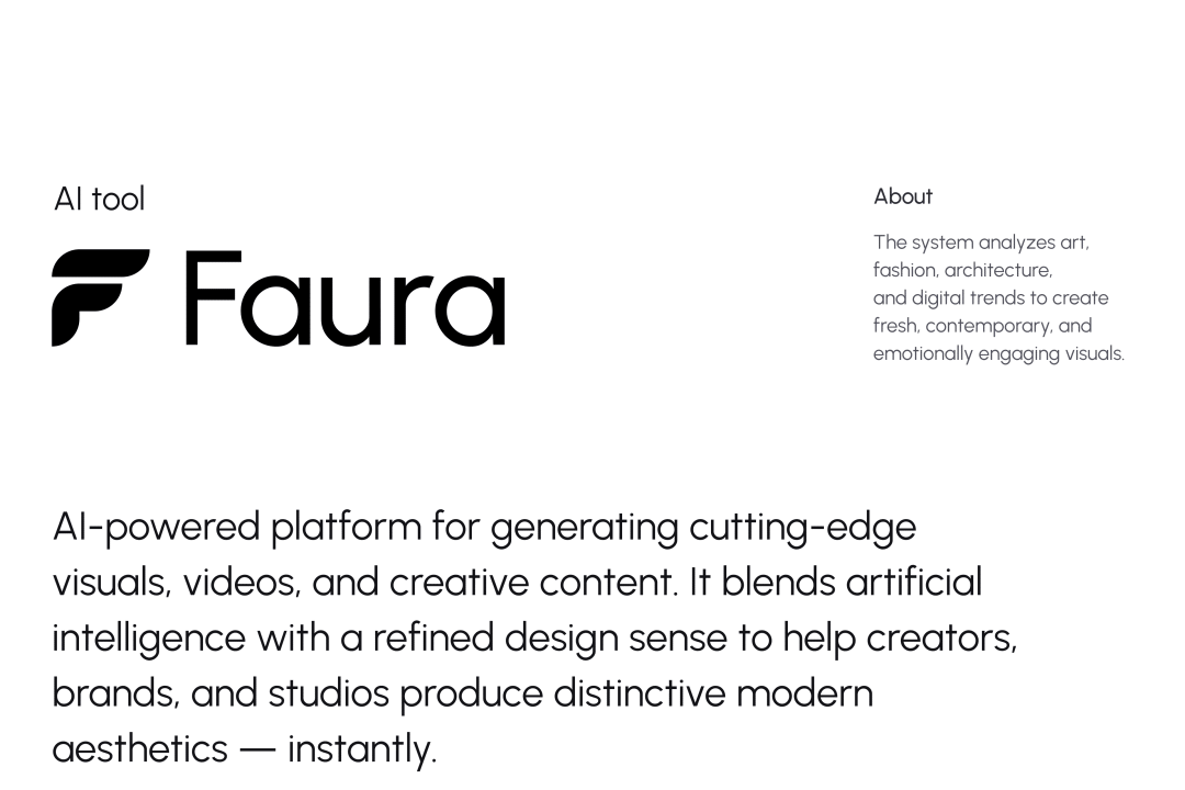 项目介绍:Faura AI 是一个AI驱动的照片编辑与创作平台,其设计通过模块化工作区、智能推荐系统、可视化操作,帮助用户快速生成专业级视觉内容,同时降低技术门槛。