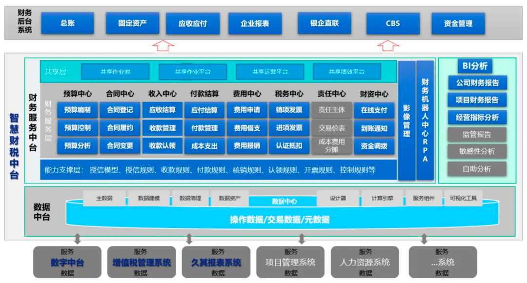 财务中台的核心思想是在企业快速发展的业务前台(如销售、生产、电商平台)和要求稳定的财务后台(如总账、税务、报表系统)之间,构建一个灵活的“缓冲带”和“加速器”。