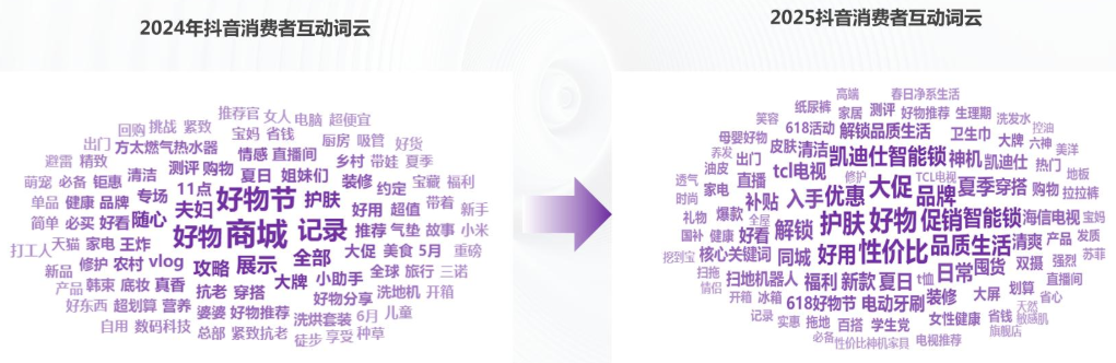 2025 年的消费者正在改写大促规则。词云分析显示,”性价比”” 品质生活 “成高频词,” 智能锁 “”电动牙刷” 等科技产品讨论量激增。