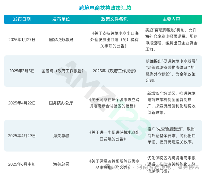 2025年国家出台多项跨境电商扶持政策,示例如下: