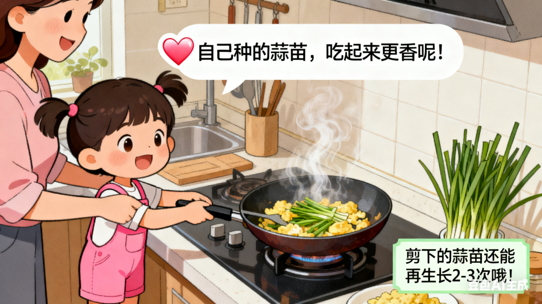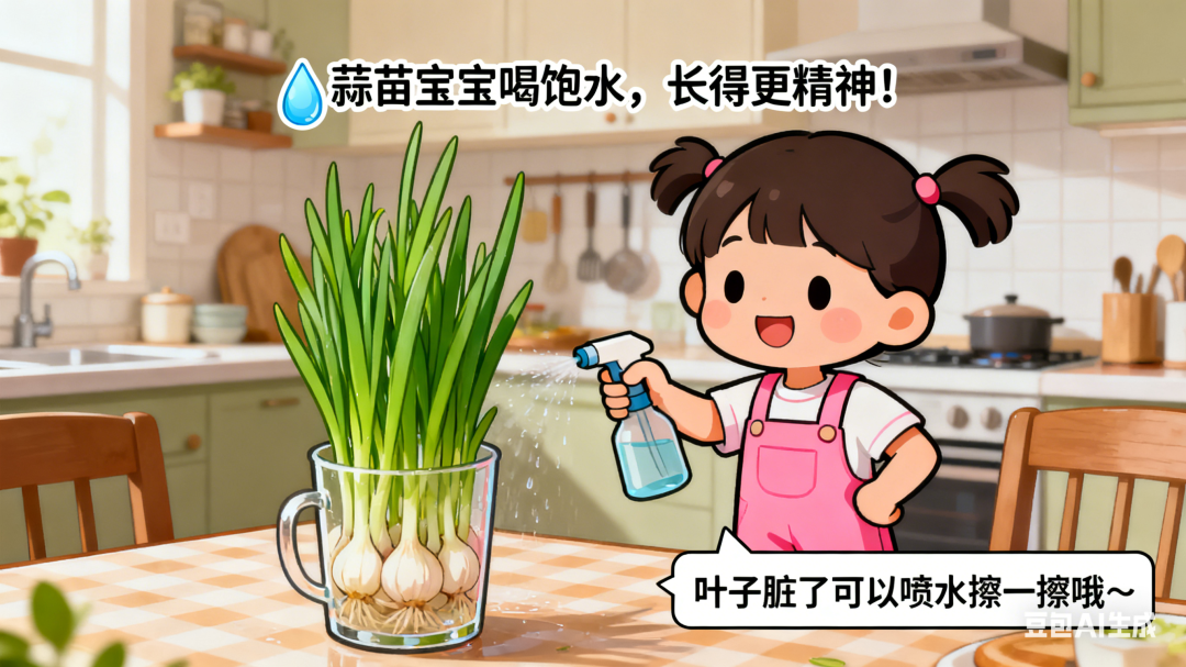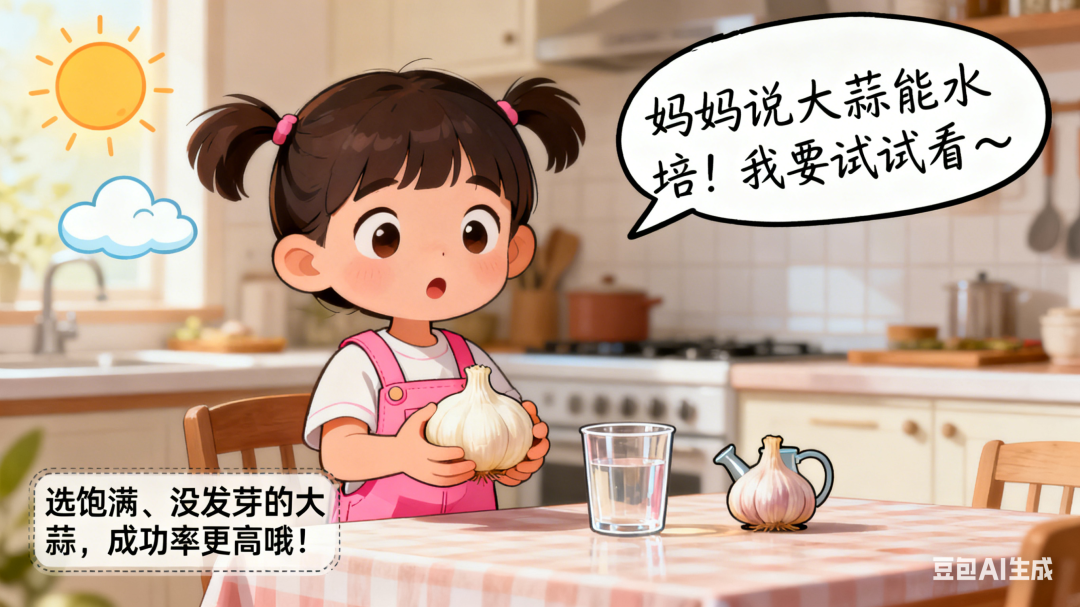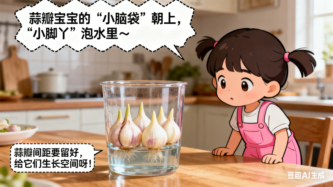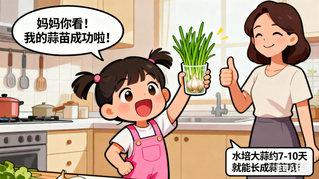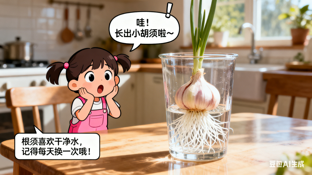请用漫画的方式,讲讲水培大蒜的过程
