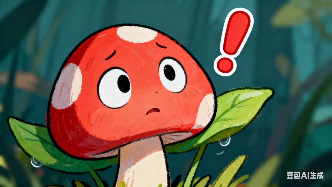 画面:小喷菇的特写镜头,它突然睁大了眼睛,叶片因紧张而微微颤抖,视线望向画面之外。