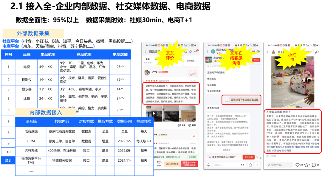 - 社交媒体:抖音、小红书、快手等,企业内部:调研数据、热线、在线与消费者的沟通记录