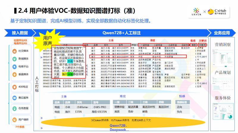 - 分析层面我们基于可用的VOC构建了分析体系,进而赋能场景应用达成业务的目标。