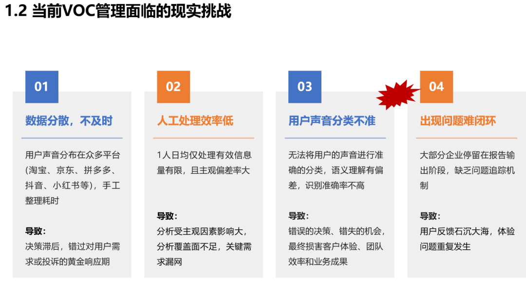 VOC可以服务于企业的各个部门,但是在VOC分析的时候会面临非常多的现实挑战