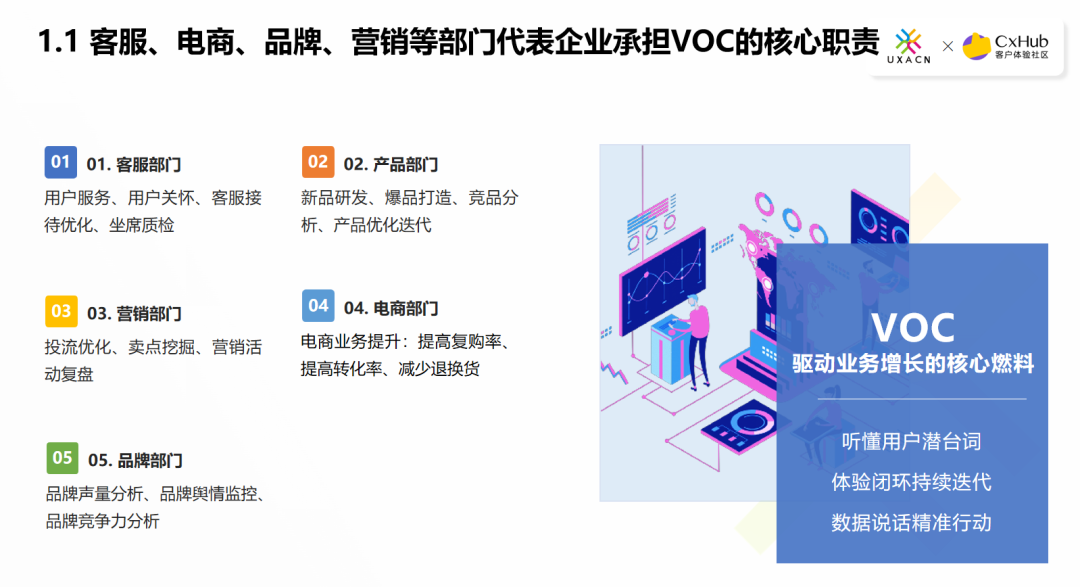 1.1 客服、电商、品牌、营销等部门代表企业承担VOC的核心职责