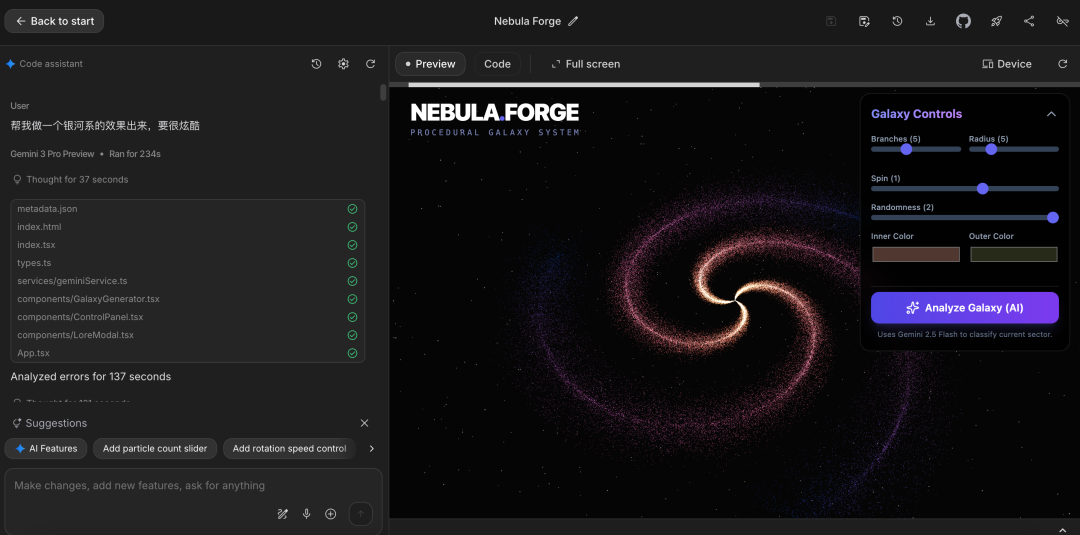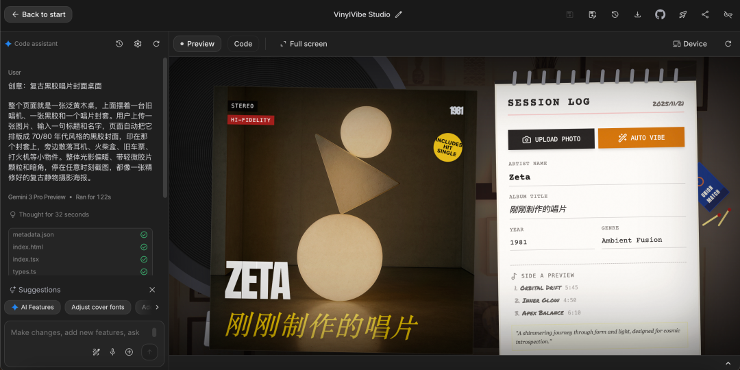 Gemini 给你的,现在更像是:一个已经帮你把“第一屏界面 + 初步交互”搭好的前端雏形;外加一个可以在线预览、随手分享给别人的 demo 环境。