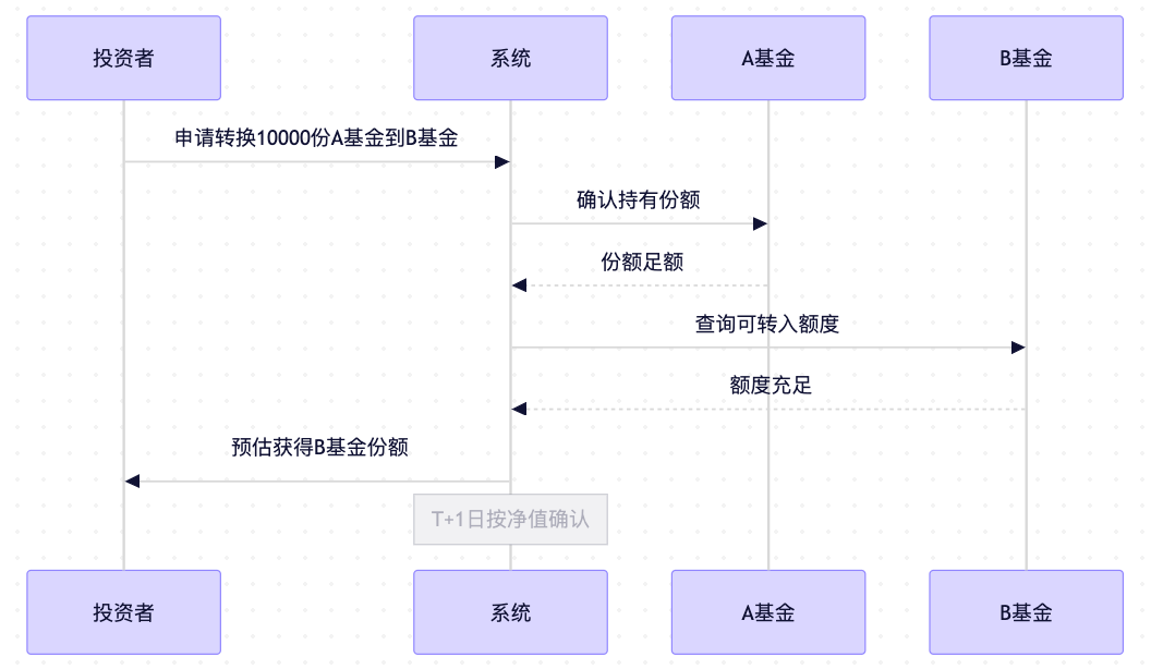 - 转入份额 = 转入金额 / 转入基金当日单位净值。