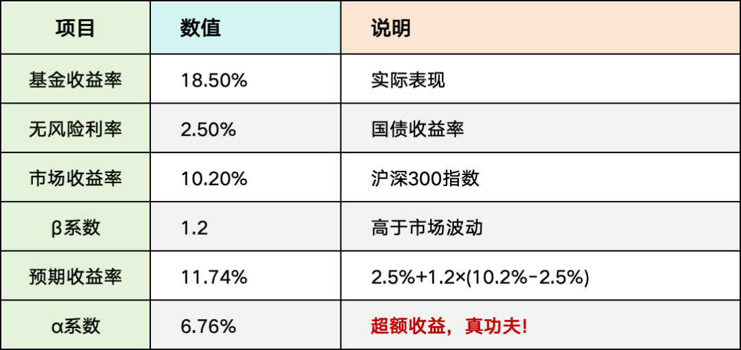 使用场景:评估基金经理的真实能力、比较不同基金的超额收益能力、基金经理绩效考核和薪酬计算、资产配置决策(高α资产值得超配)、不适合评估指数基金。