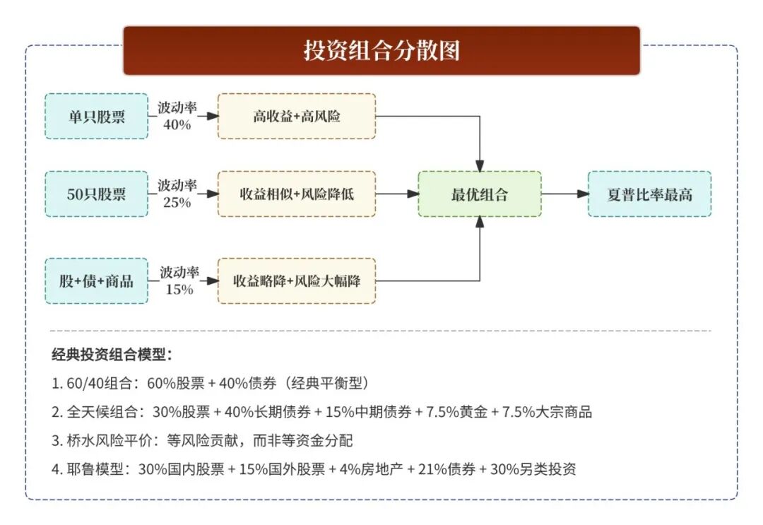 特点:不把鸡蛋放在一个篮子里,降低单一资产的风险、平衡收益、匹配风险承受能力。