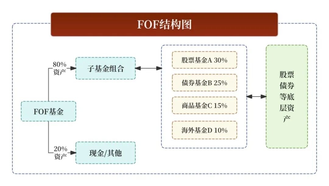 通俗理解:FOF(Fund of Funds)是以其他基金为主要投资标的的基金产品,通过持有多个基金的份额,实现二次分散投资。基金中的“选基专家”