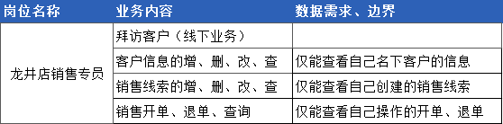 例如普通销售应只能查看自己客户的基本信息、消费记录等,而部门经理可查看本部门下所有销售的客户信息。