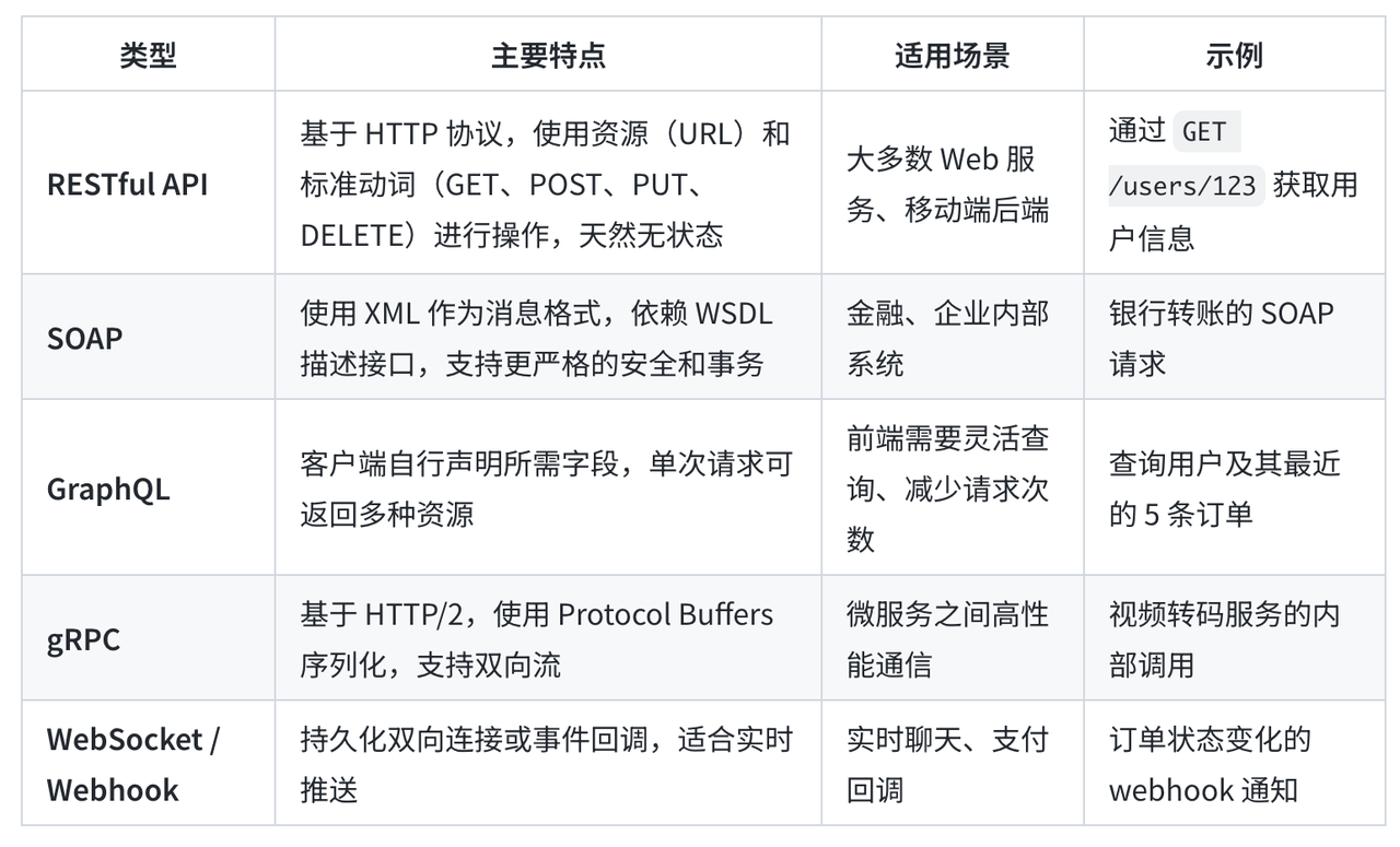 常见的API类型