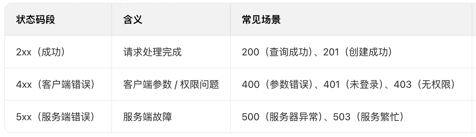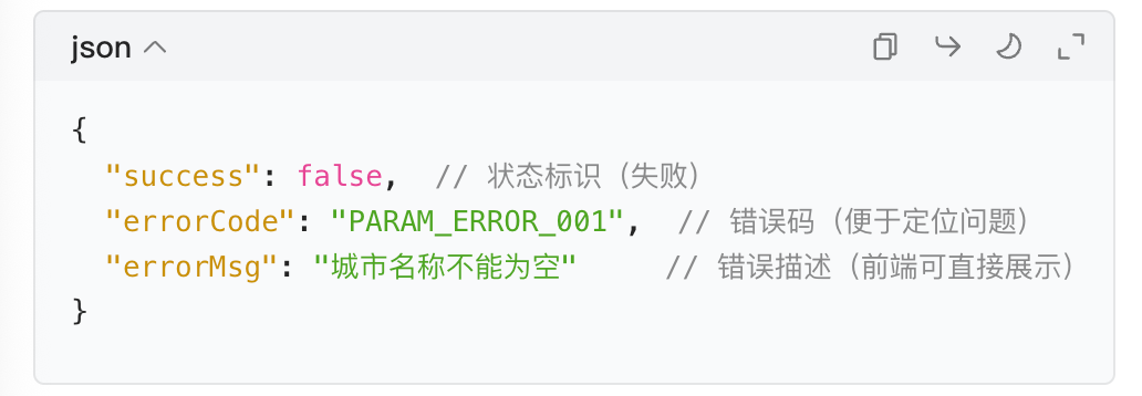 如果是失败响应:“状态标识 + 错误码 + 错误描述”;