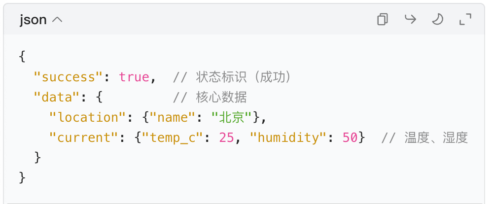 下面是以查询北京天气为例子的响应数据: