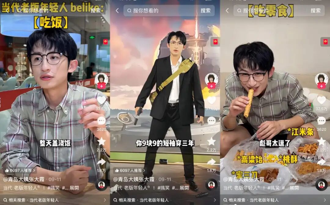 全网粉丝超5000万的剧情博主“青岛大姨张大霞”曾发布一条标题为《当代老版年轻人》的视频。在剧情中,这位“老版年轻人”一件9块9的短袖穿3年,午饭永远是盖浇饭,下班就回家看《马大帅》,不泡吧、不内卷,这条视频在快手收获37万点赞。