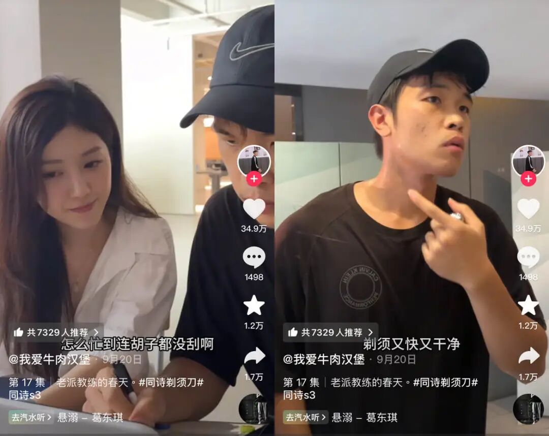 比如视频《老派教练的春天》,一个皮肤黝黑的体育教练,跟一个不嫌他粗线条的女孩谈上了“老款恋爱”,渐渐注重起外表。这时杀入一条剃须刀广告,老派教练在视频中称其刮得干净、用着顺手。这个不善言辞、球技过硬、内心细腻的形象,让这条视频在抖音收获34.8万点赞。