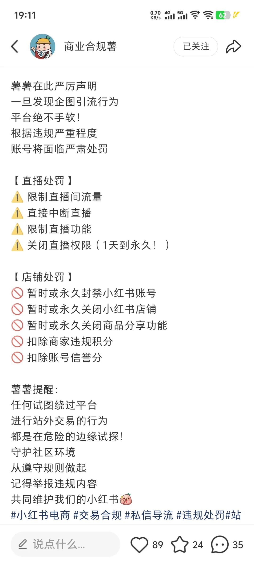 其实主页资料、笔记等违规场景在以前的公告里就有,这次主要是封堵直播引流的场景,而且处罚也主要是面向直播和有店铺的帐号。