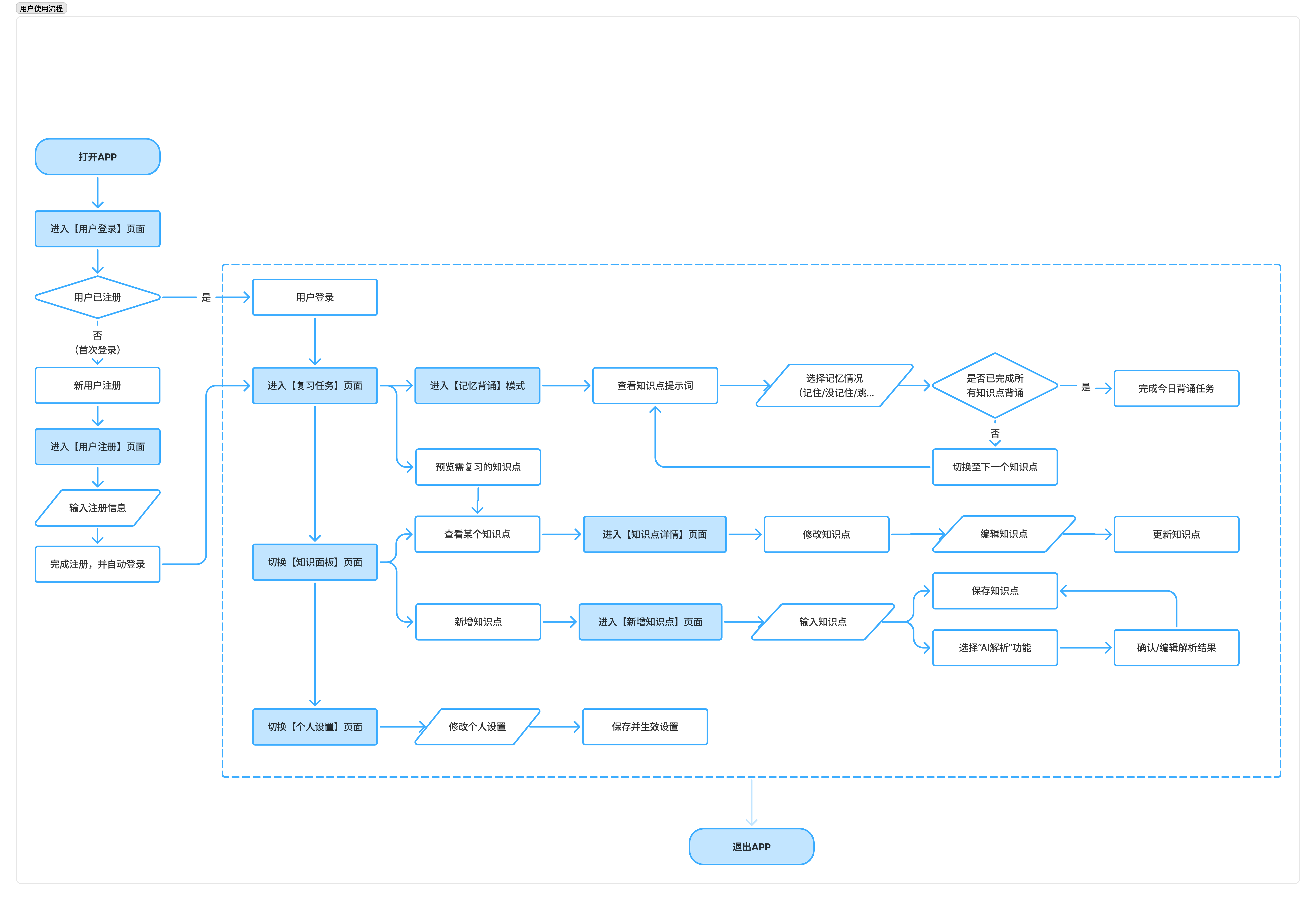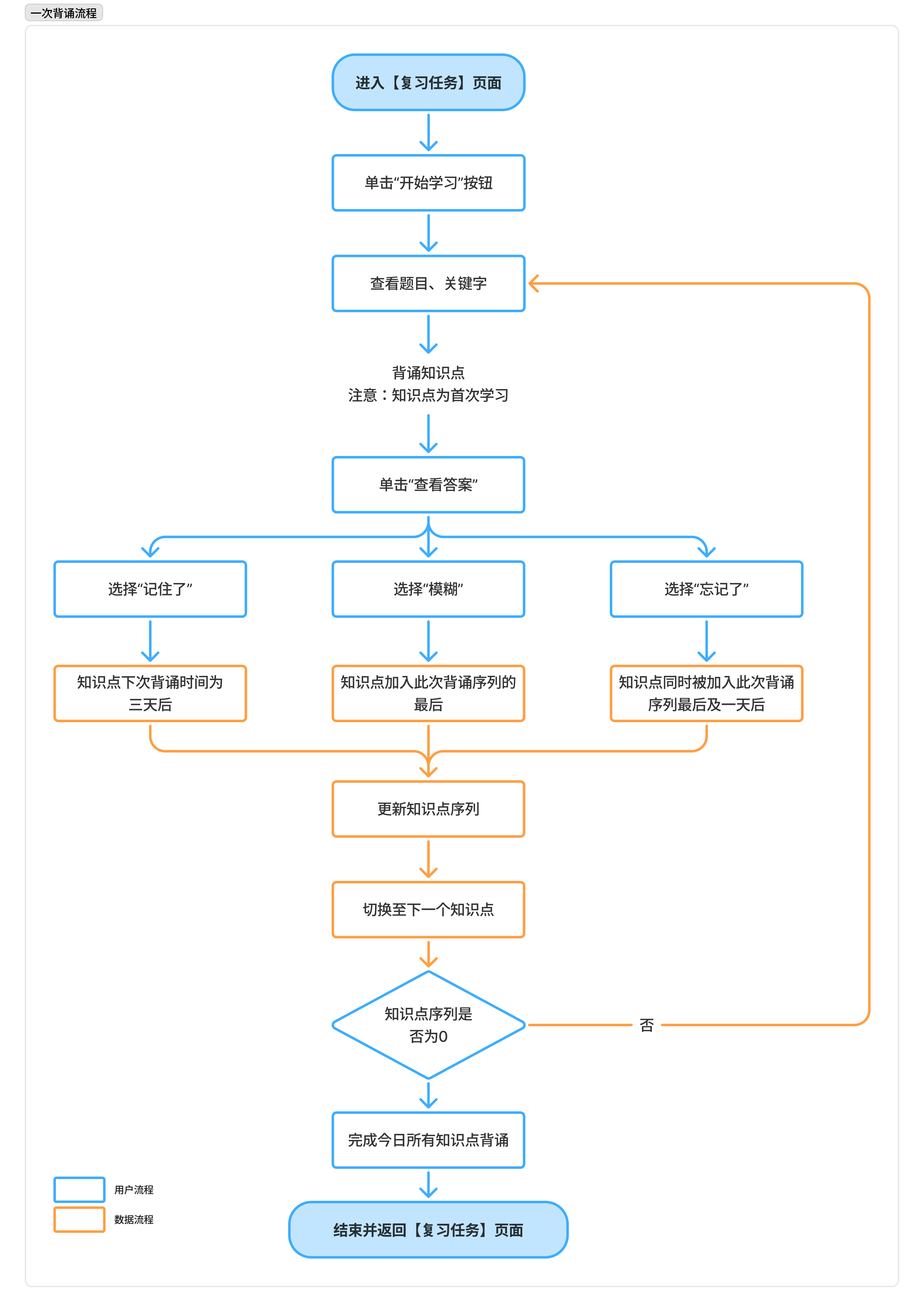 - 用户行为:进入复习模式,并根据提示反馈记忆情况
