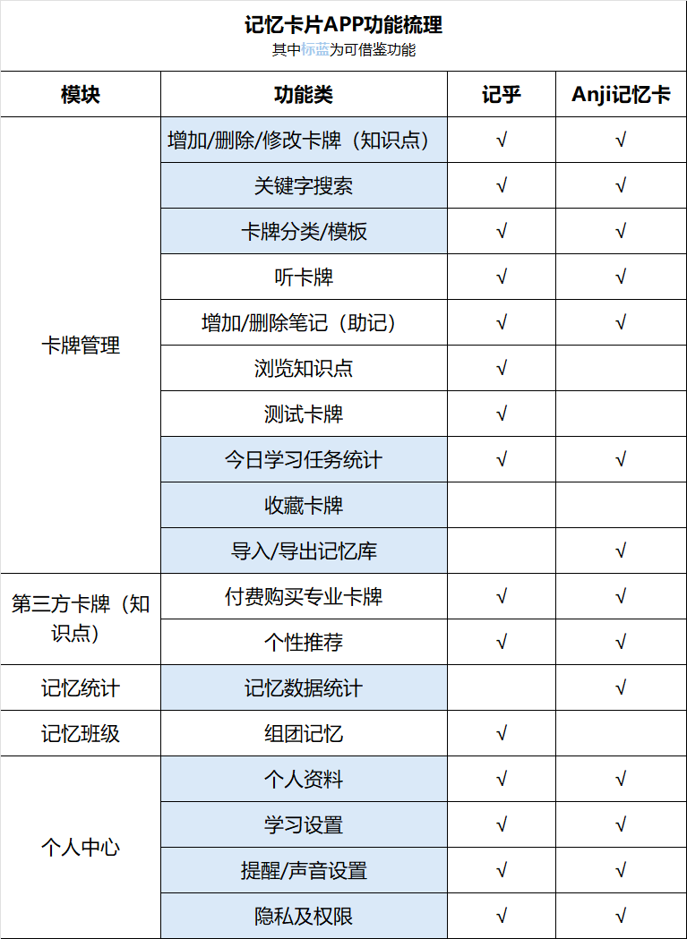 (1)记忆卡片类产品核心功能梳理: