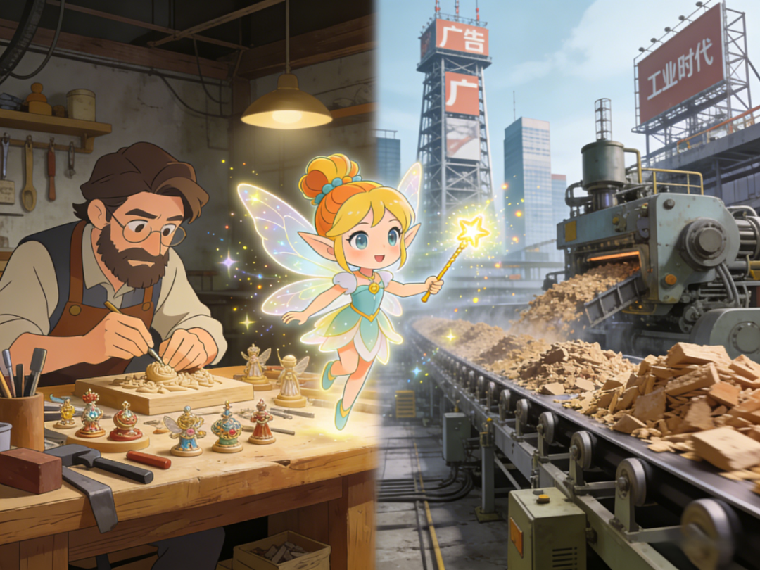 过往创意产业,每道工序的成本都很昂贵。传统媒体时代,创意专属于文化领域,影视大腕、策划大师成为标杆,姑且称为创意手工时代;