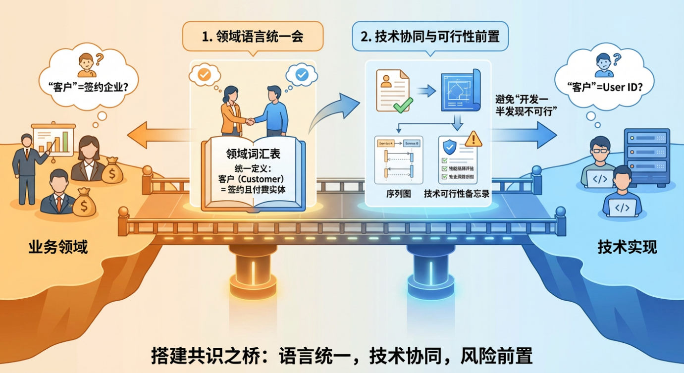 在开发前,必须拉齐业务和技术团队对核心名词的理解。比如,“客户 (Customer)”在业务嘴里可能指“签了合同的企业”,而在技术眼里可能只是“数据库里的一个 User ID”。这种分歧必须在统一会上消除,形成全员共识的领域词汇表。