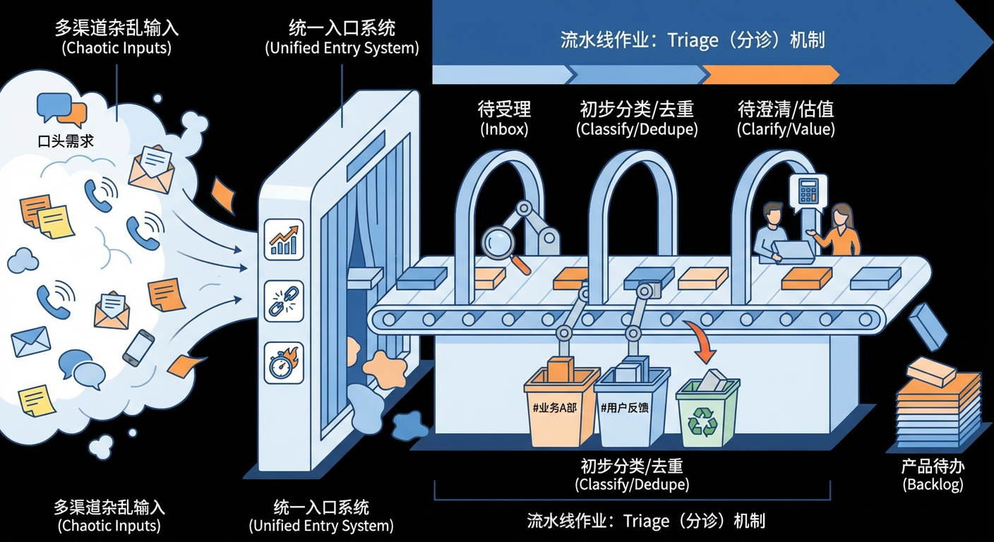 一个混乱的需求入口是所有灾难的开始。我们需要建立一条标准化的“需求受理流水线”,拒绝一切口头需求。