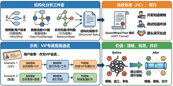 当一个机会被立项后,分析师的任务是将其从一个模糊的想法,转化为开发团队可执行、测试团队可验收的精确规格。