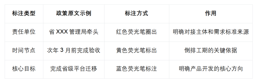政策文件就像产品的 “设计蓝图”,但藏在宏观表述里,得用工具把它拆成 “零件”。这三个步骤是我带团队验证过的高效方法,并在多项省级政务系统的建设中得到了实践。