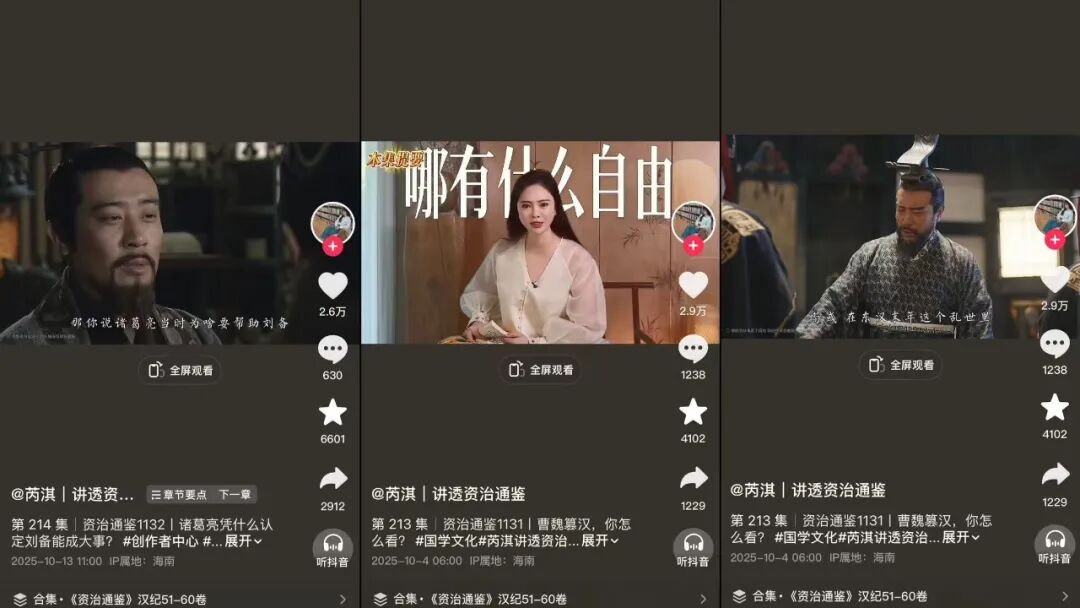 @芮淇|讲透资治通鉴 是知识赛道内近日被发掘的一颗璀璨 “明珠” 。据观测,该账号主打精讲5000集全本《资治通鉴》,从2022年8月29日发布开篇视频到现在,已坚持发布了超1500条作品,是实打实的高产创作者。