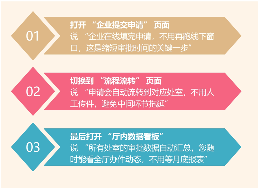 厅领导不需要 “知道系统怎么用”,只需要 “知道系统能帮厅里解决什么问题、多久能解决、需要他做什么”。