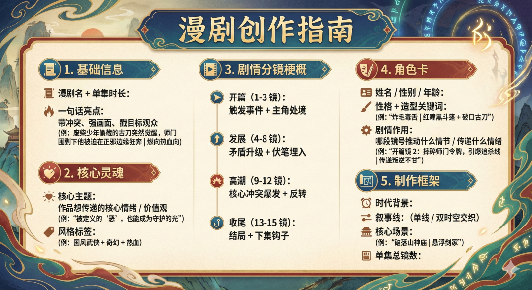 根据马克张老师的AI漫剧方法论以及NotebookLM学习知识库,可以提炼相关步骤。