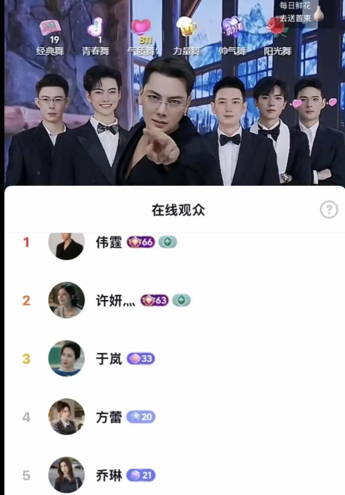 前段时间,赵露思和陈伟霆主演的《许我耀眼》热播时,便有男主播模仿陈伟霆在剧中的妆造,梳着油头、戴着金属框眼镜跳抖舞,直播间在线观看人数上千。