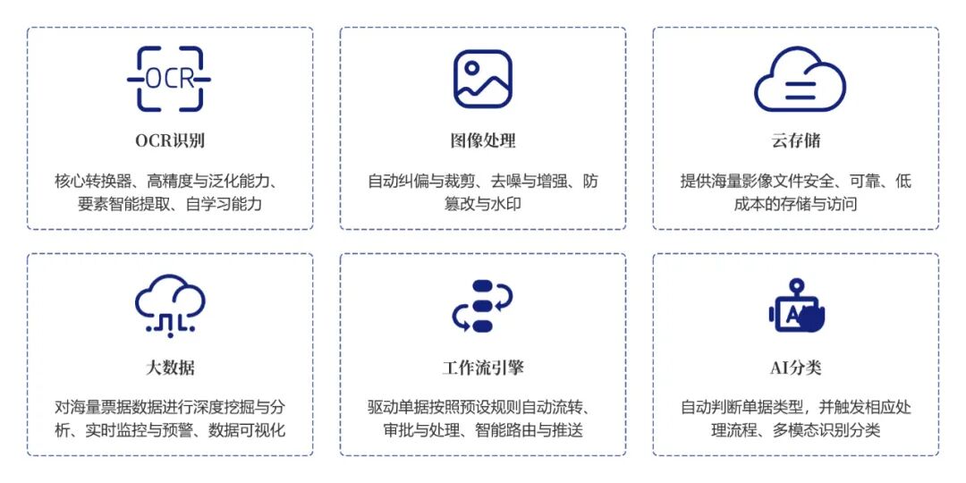 除了真实市场需求存在外,需要强大且成熟的技术去支撑。电子影像系统在实施和生产过程需要:OCR识别、图像处理、云存储、大数据、工作流引擎、AI分类等技术的发展为其提供了支撑。正源于这些技术的深度融合与持续进化,使得财务电子影像系统的价值发挥。