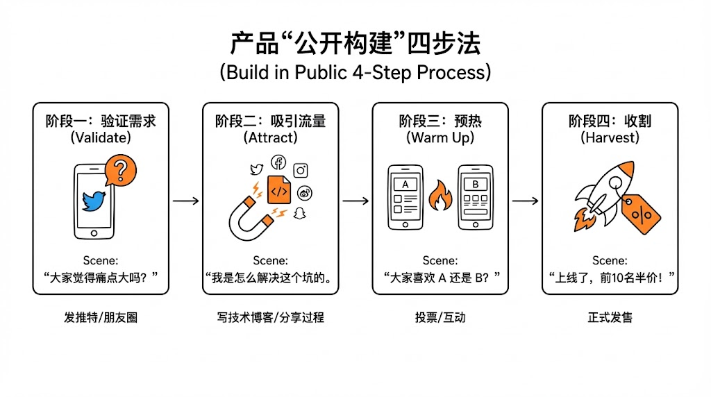 啥意思?就是边做边晒。不去写广告,而去晒你做产品的故事、进展、用户反馈、真实的案例/价值。