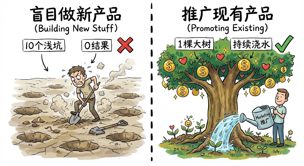 我觉察到我总是掉入一个误区,就是一直去做一些小工具、小插件,能够提升一点点的效率,但说实话,有没有这样的工具,其实真的无所谓,属于是锦上添花的需求,现在回过头来想一想,从商业的角度上看,如果我是用户,我对这样的需求,付费意愿其实并不高,也不可能花很多钱在这上面。