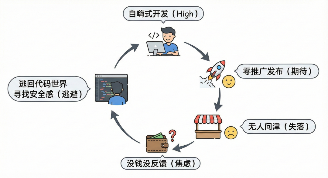 我有一段时间陷入了“自嗨式开发”的恶性循环里,核心原因就是,我只开发我感兴趣的,不开发有人买单的,我记得很清楚,有一次我回厦门和一个老板聊天,我当时还很自豪的说,说即使我明知道有个东西有需求有人买能赚钱,但是我要是不感兴趣,我就不会去开发。而当我提出我有一个想法,正在把它实现的时候,那老板还问我说,有人为它买单不?
