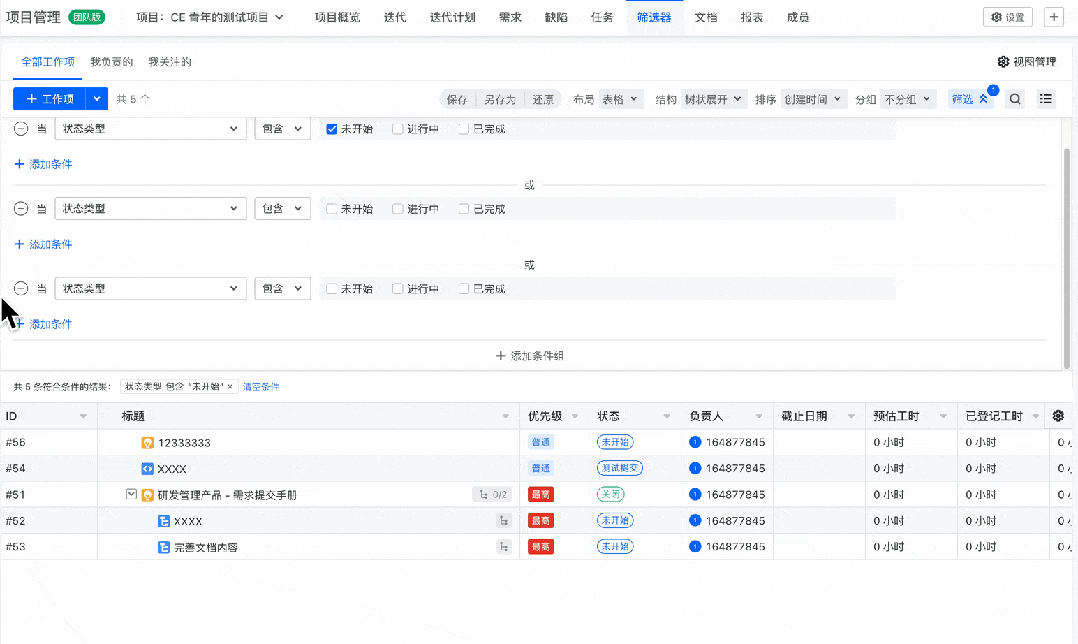 比如在 ONES 当中,就可以将筛选条件保存复用(也就是截图上的视图),同时可以将它设为公共视图,分享给其他人。