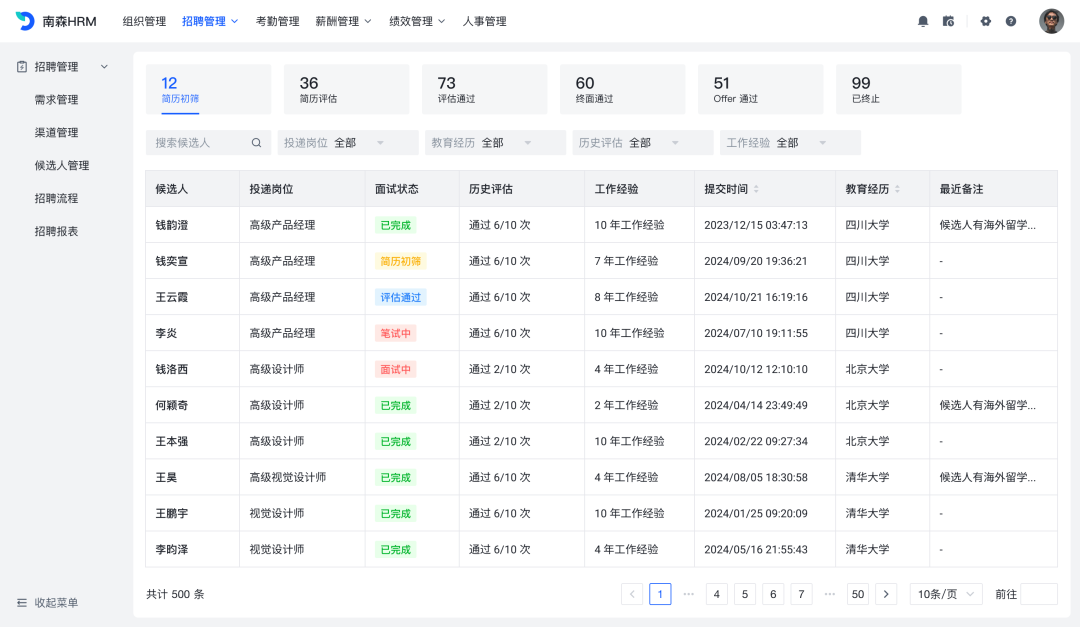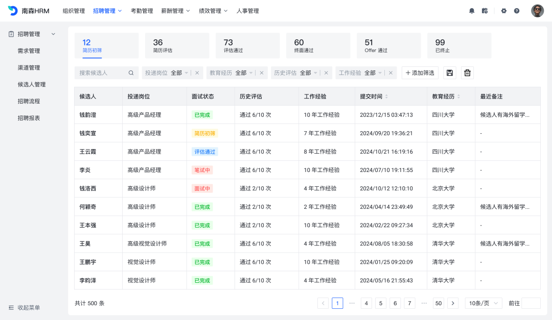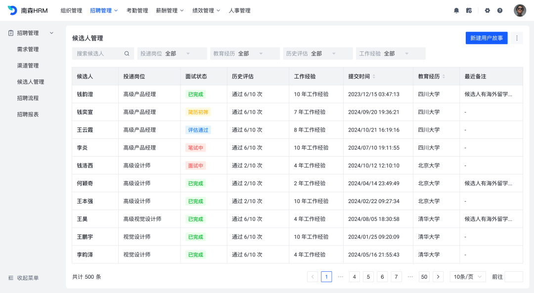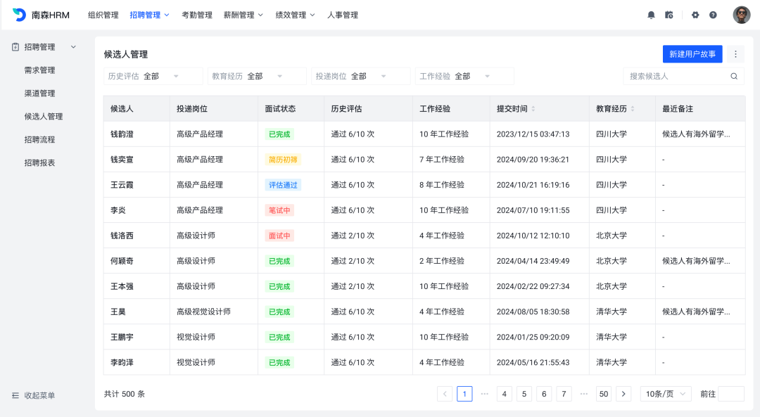 项目背景:南森HRM(人力资源管理系统)核心角色就是 HR,她的日常工作就是 大量简历筛选、招聘流程管理。她们需要反复在“人才库”页面查询数据,这也就为后续的筛选埋下伏笔。