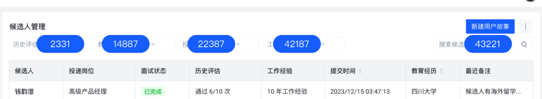 阶段 1:南森HRM基础版本上线后,主要服务互联网行业的招聘工作,因此系统较为单一,对于人才库页面的使用需求相对简单。不过在上线一段时间过后还是会收到以下反馈: