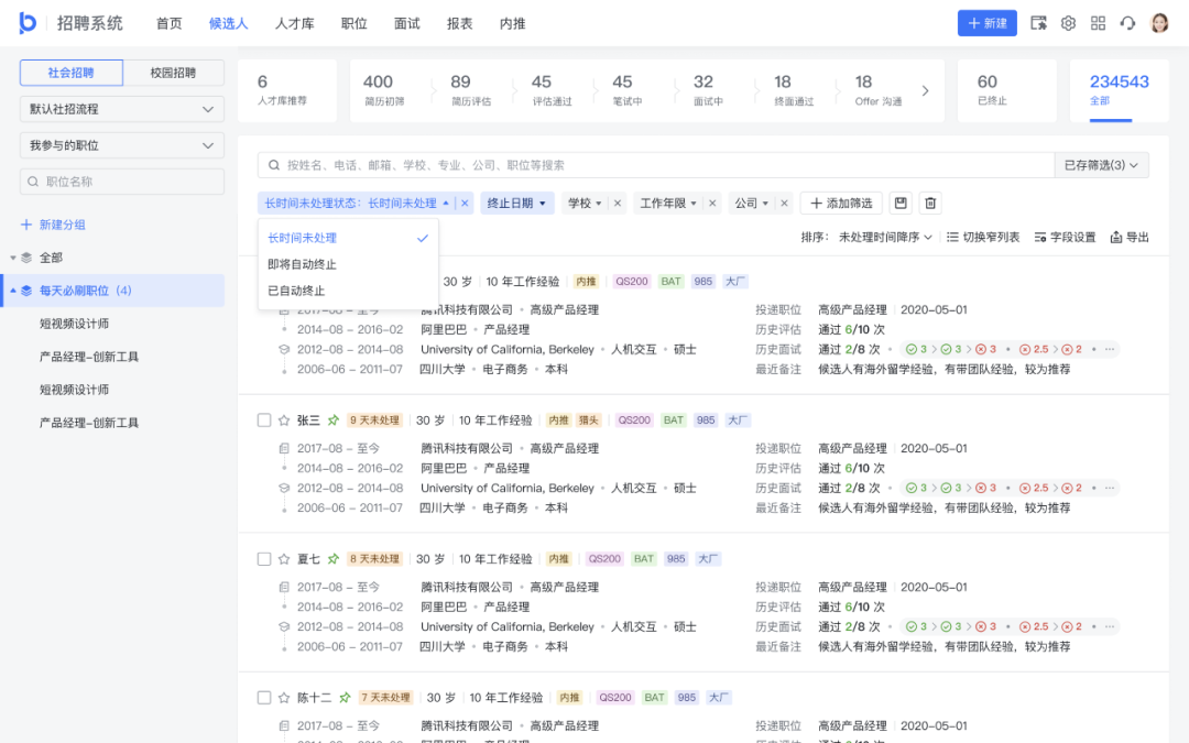 1.日常工作主要以固定的招聘任务,比如小李 HR,主要负责产品部门的招聘工作,因此在使用时就会有自己的筛选习惯,所以希望能够将筛选逻辑进行保存