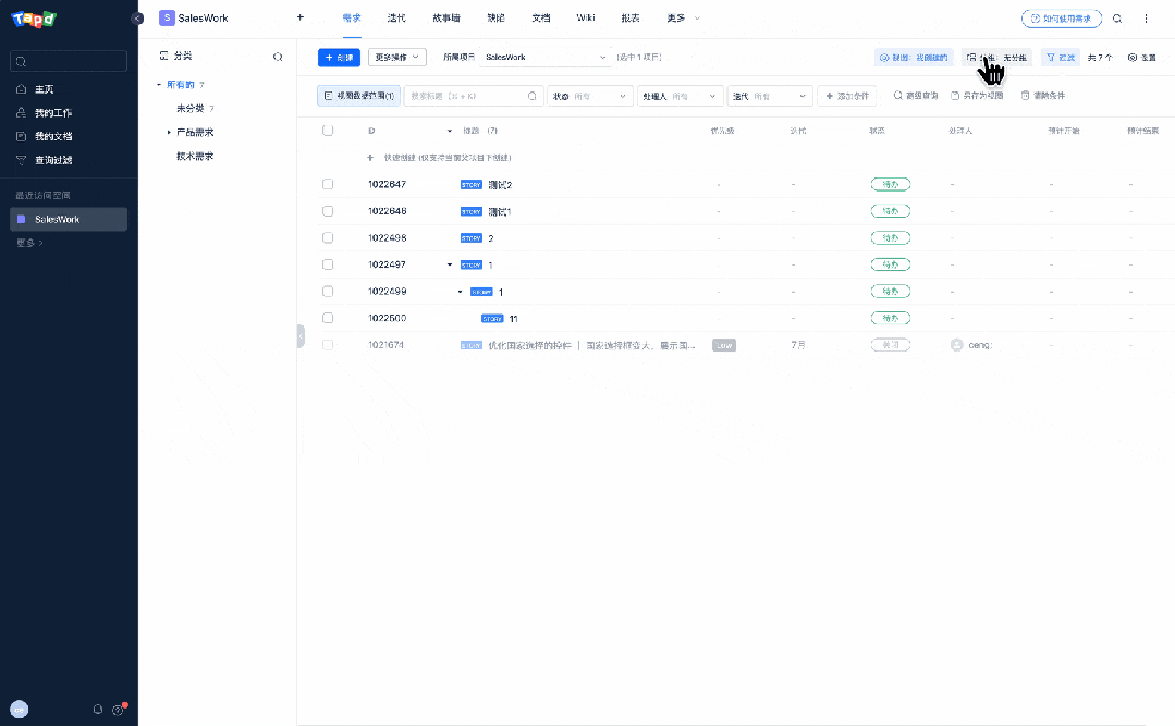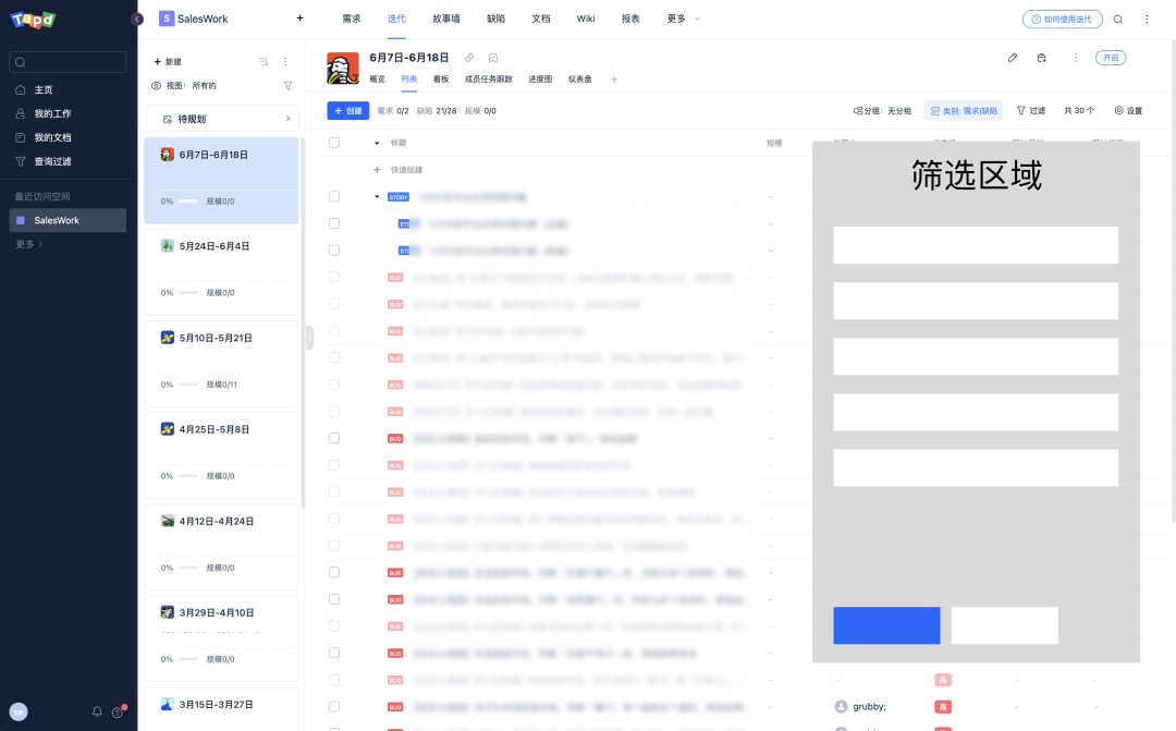 在早些版本,TAPD主要使用浮窗方式,用户点击后可以自行选择筛选项配置;