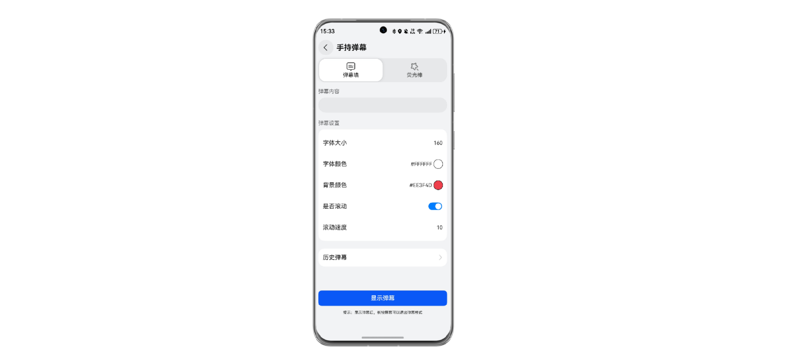 本组件提供了手持弹幕、荧光棒及历史记录管理功能。