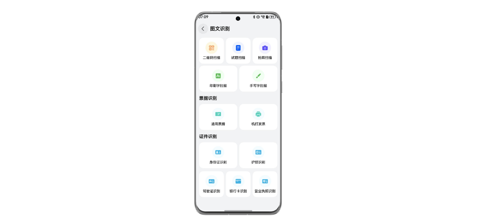 本组件提供了文字识别、二维码扫描、票据识别、卡证识别等功能。