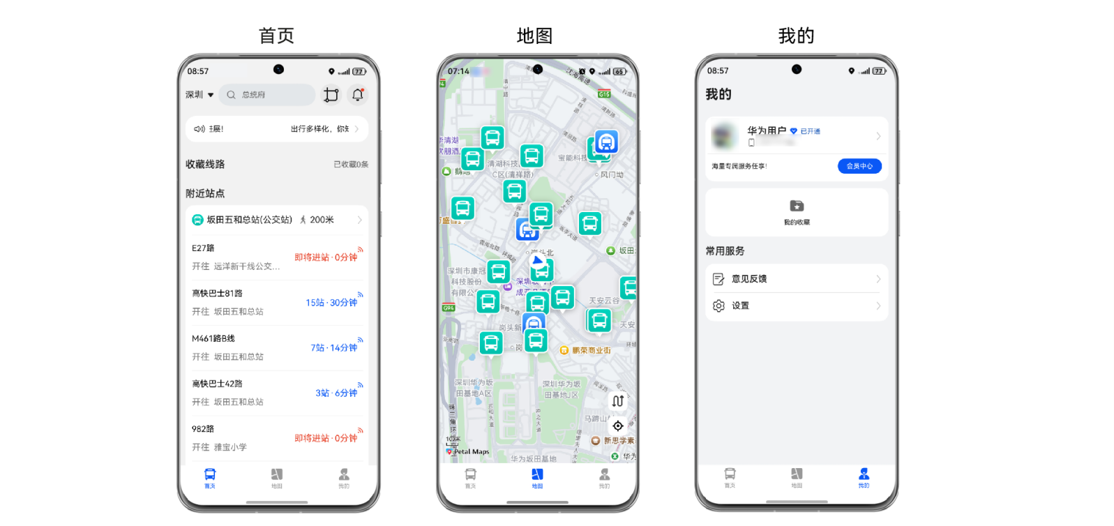 本模板为公交地铁类应用提供了常用功能的开发样例,模板主要分首页、地图、我的三大模块。本模板已集成华为账号、微信支付、支付宝支付、地图、推送等服务,只需做少量配置和定制即可快速实现华为账号的登录、地图等功能。